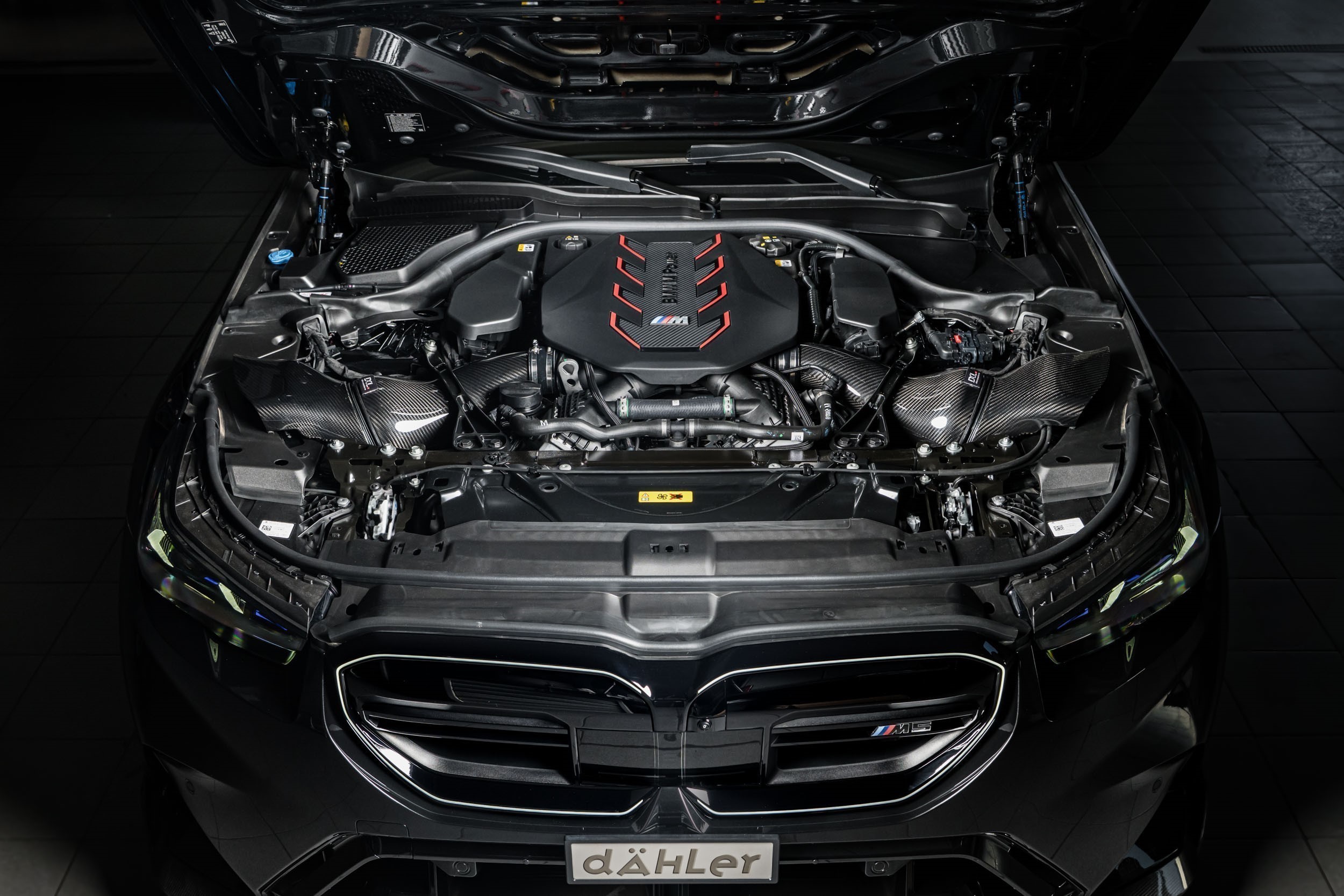 Die Schweizer BMW-Spezialisten aus Belp bei Bern rollen hiermit ihren umfangreich optimierten G99 M5 Touring ins Rampenlicht. Herzstück des Upgrades ist die hauseigene Leistungssteigerung «powered by dÄHLer». Sie entlockt dem Achtzylinder einige zusätzliche Pferdestärken und Newtonmeter, sodass die Leistung des Gesamtsystems auf 830 PS und 1.130 Nm ansteigt! Wie bei dÄHLer Competition Line üblich, erfüllt das Upgrade die Euro 6d-Abgasnorm gemäß WLTP und es kommt mit EU-/CH-Homologations-Gutachten. Letzteres gilt auch für die Kombination mit dem ergänzend angebotenen Carbon-Air Intake und der Edelstahl-Komplettabgasanlage.